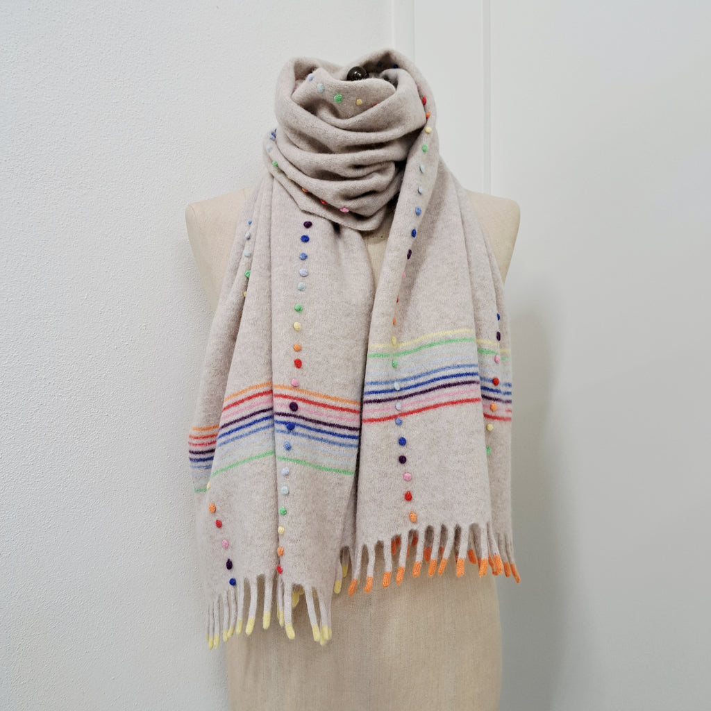 Natural Melange with Rainbow stripe and embroidery 162cm x 43cm