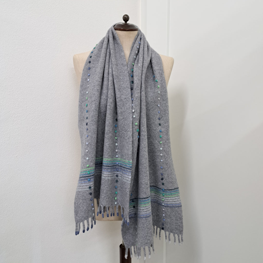 MidGrey Melange with Cool Tone stripe and embroidery 154cm x 42cm